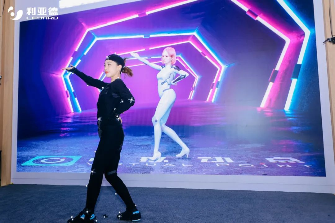 展会现场,FUN88·乐天(中国游)虚拟动点架设了8台OptiTrack空间数据采集摄像机,借助空间计算自研软件,通过AI算法对动捕演员的身体动作进行识别、分析形成骨骼数据,传输至引擎算力工作站,实时驱动自研高仿真数字人形象,为大家献上一场场数字人“大秀”,引来众多行业专家驻足洽谈。